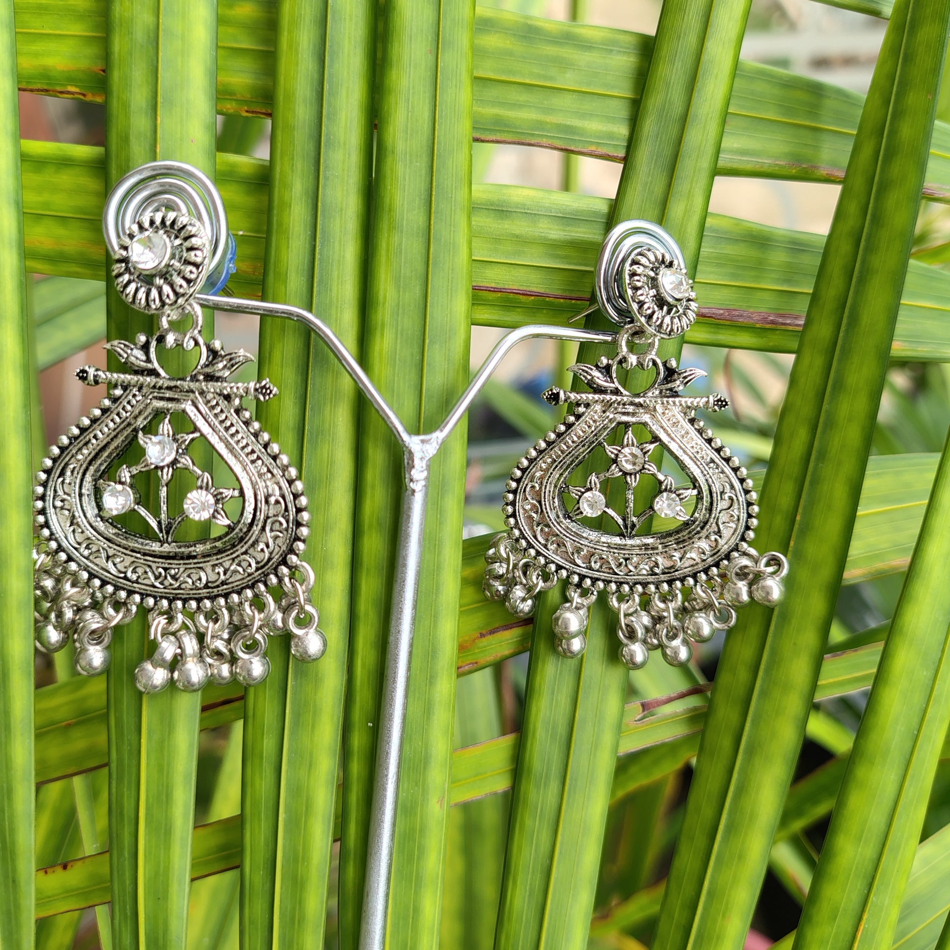 This is a stunning oxidized silver jewelry set that includes a beautifully crafted necklace and matching earrings. The design highlights: